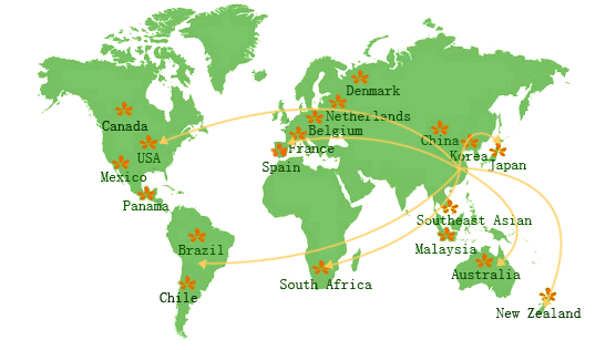 公司在日本、美國(guó)、南美、歐洲等地設(shè)有分公司或有合作伙伴,充分與國(guó)際接軌,開(kāi)拓國(guó)際市場(chǎng),大量引進(jìn)世界各地的優(yōu)良品種和種質(zhì)資源,在國(guó)內(nèi)研究開(kāi)發(fā)、加工、示范、推廣,再分銷到世界各地。